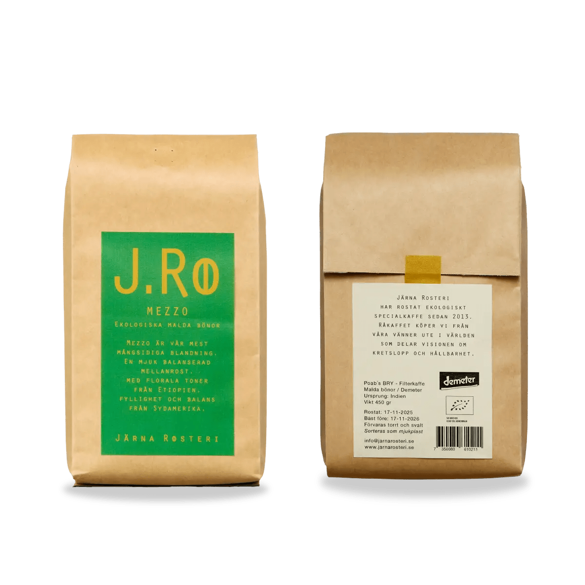 Järna Rosteri has been roasting organic specialty coffee since 2013 and sources green coffee from producers worldwide who share their view on sustainability and circular practices. Mezzo is a tribute to that balance: a coffee that is both easy to drink and flavorful, with a pleasant medium roast profile that suits most.