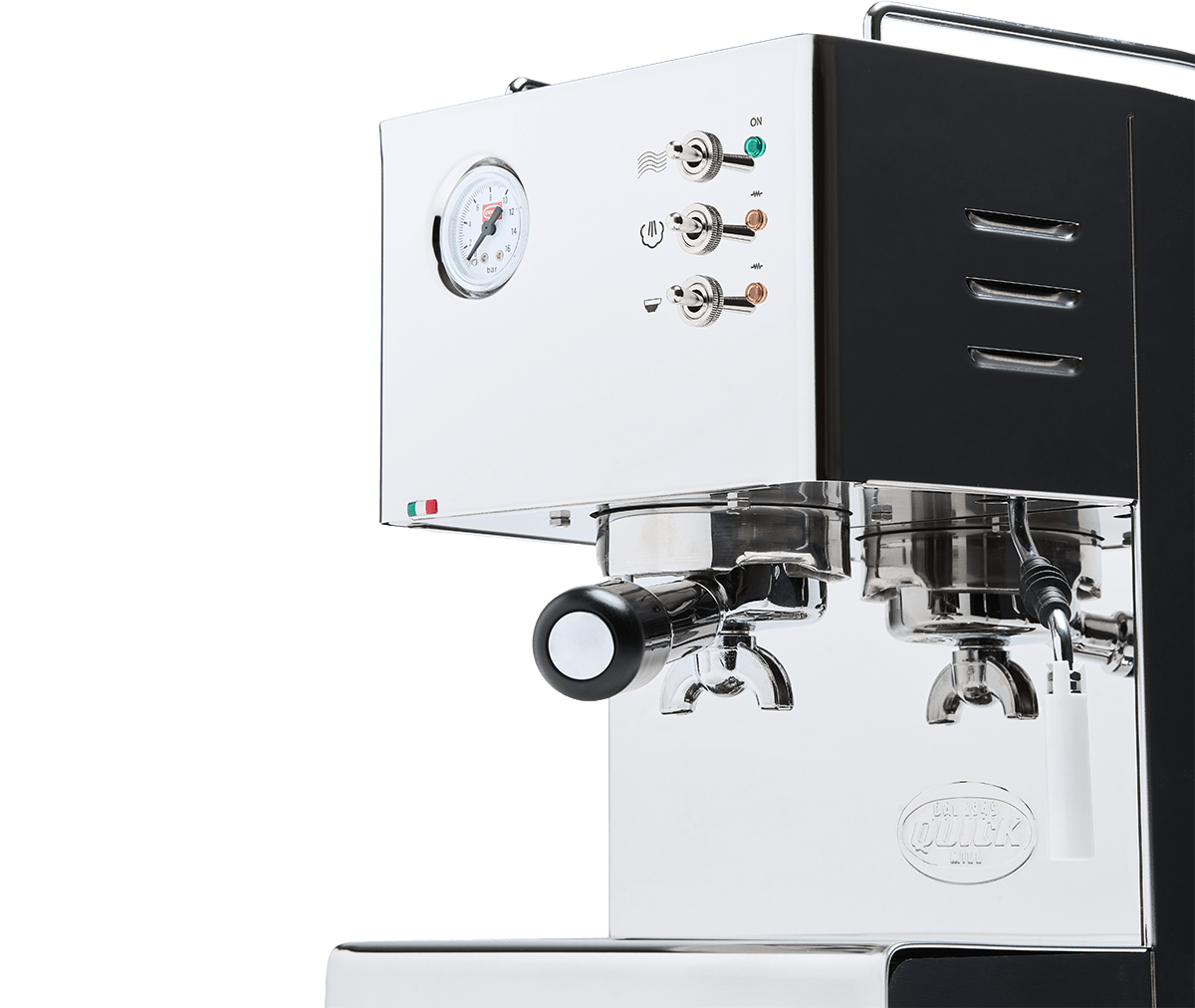 Material: Fully stainless steel; Quick Mill brew group with O-ring; steam wand with aerator
