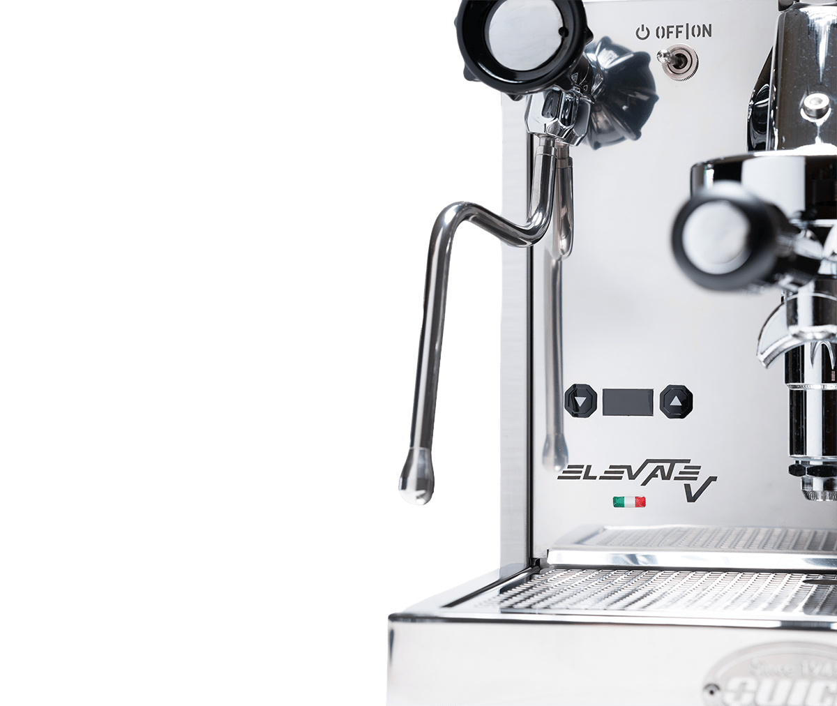 The Elevate V is equipped with Quick Mill’s exclusive ergonomic valves and anti-burn wands — perfect for milk frothing and safer handling.