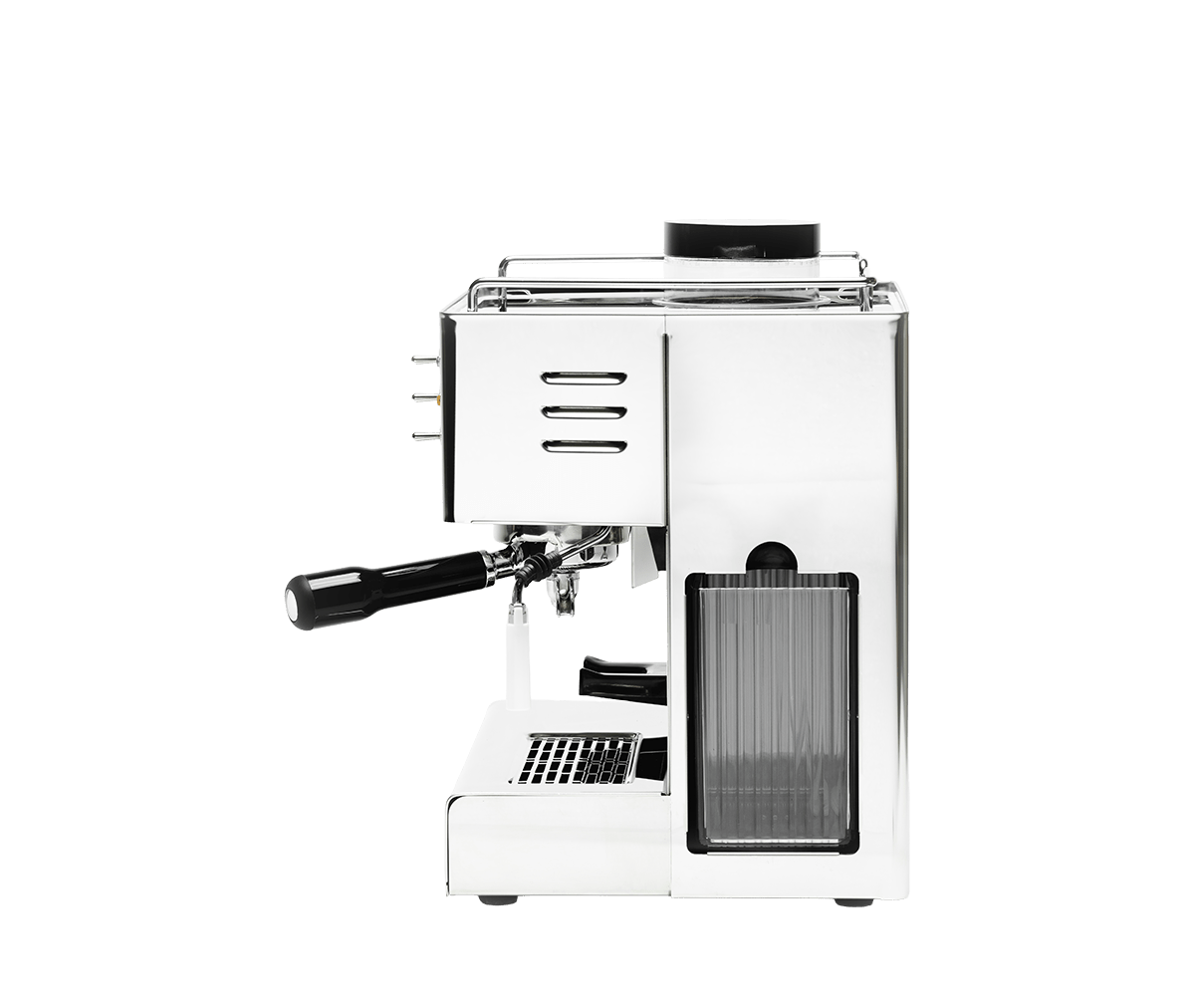 The machine is controlled with classic lever controls, clear indicator lights, and an integrated tamper. The 1.8-liter side water tank makes refilling easy and convenient.
