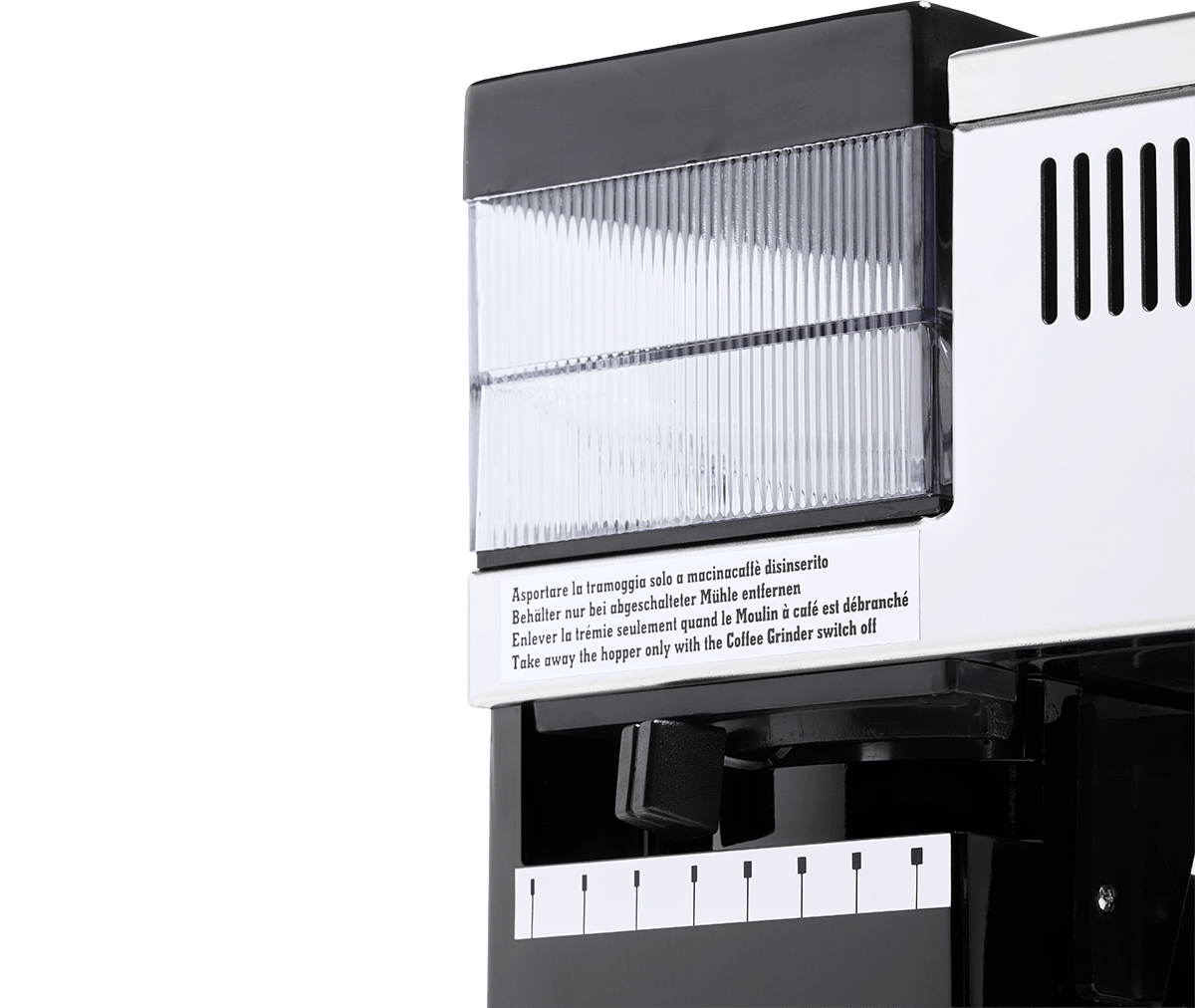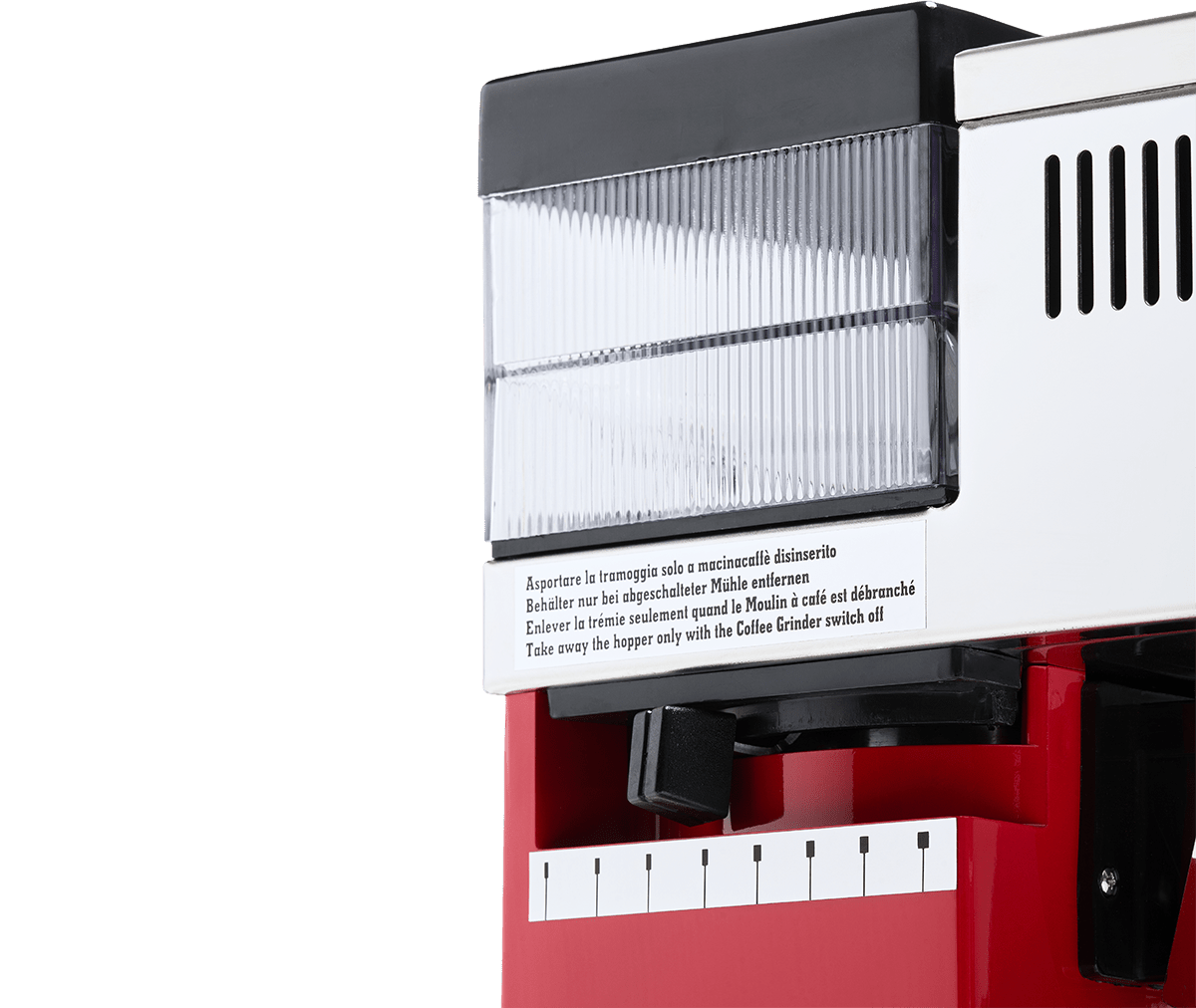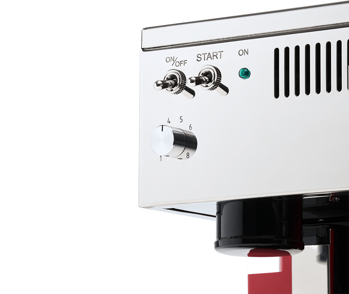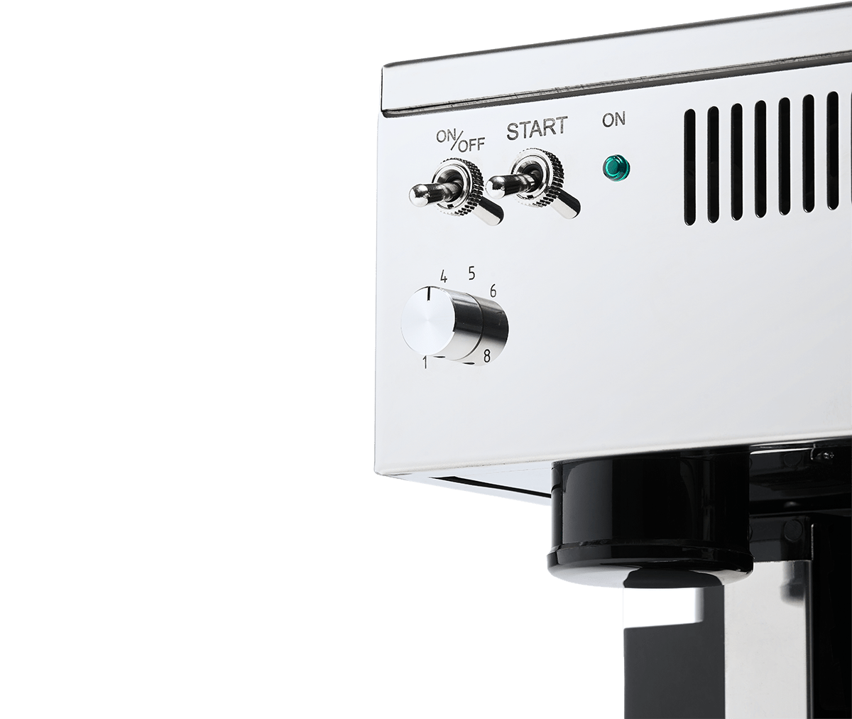 Retrò has an integrated espresso grinder with 43 mm flat burrs that provide consistent particle size and better extraction. Stepwise grind adjustment and dosing control make it easy to find the right setting for your beans.