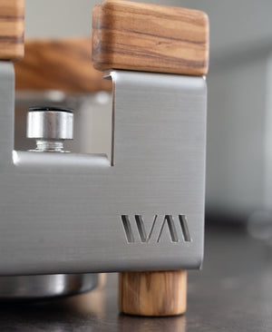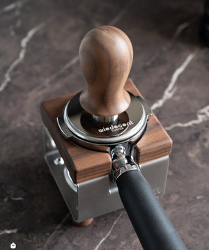 This tamper station from Wiedemann is the perfect choice for baristas who want precision and aesthetics in their espresso corner. With its robust and stylish design, made of high-quality wood, the station is both a functional and visually appealing upgrade. Choose from four different types of wood; olive wood, walnut, oak and dark oak. Combine your choice of wood with the three different steel options; stainless steel, white lacquered steel and black lacquered steel.