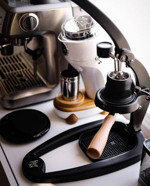 Flair 58 has a wide base for stability for brewing and has an extended lever to be able to brew under high brewing pressure. The lever has an ergonomic T-handle for comfort and control.