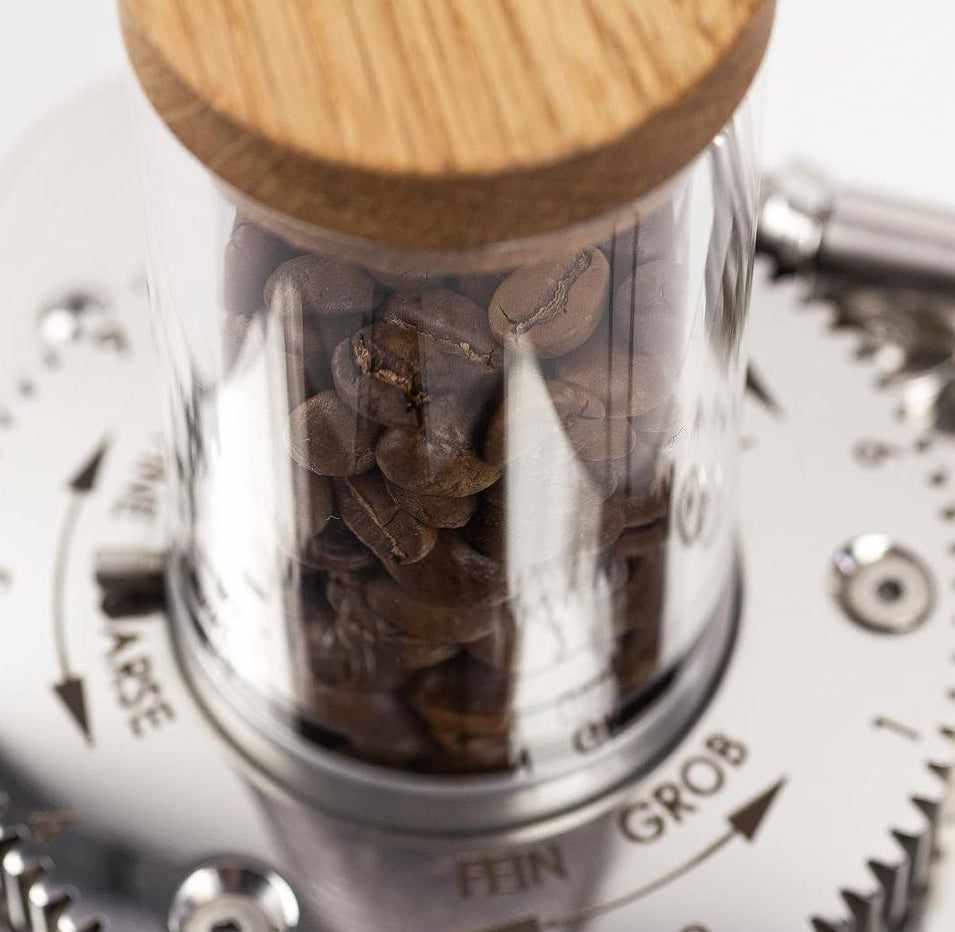 All our products are handmade in Wiedemann's manufacture and made from wood sourced from sustainable forestry. Our bean container is the perfect upgrade for your coffee grinder and keeps your beans fresh all the time.
