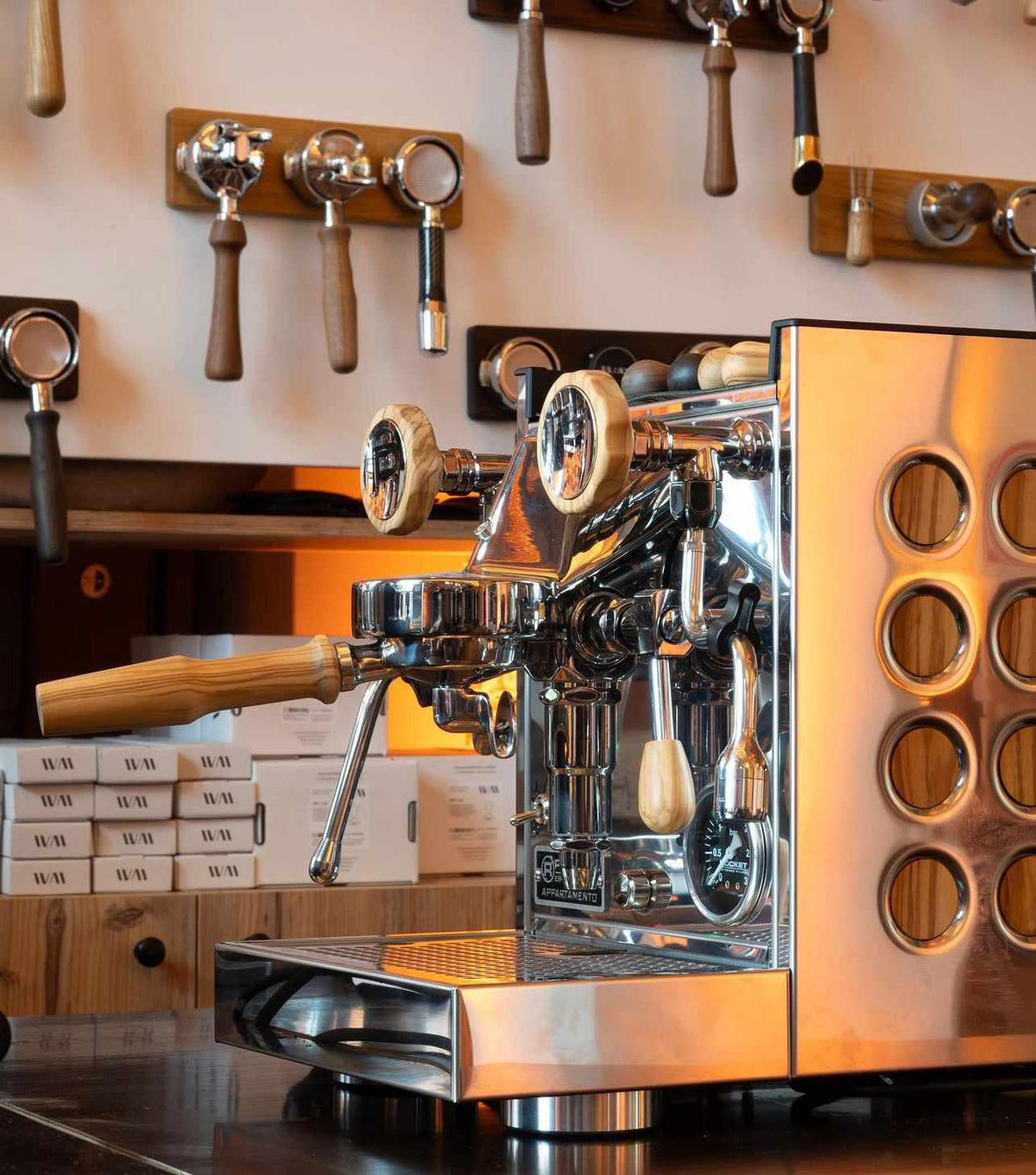 Handmade magnetic side panels for your Rocket Appartamento TCA. Choose between olive, walnut, oak, and dark oak to match your taste. By combining with matching wood details for the portafilter and levers and the rotary knob, you can make the espresso machine feel extra exclusive. The product comes with 24 magnetic wooden plates that you can easily attach to the side of the espresso machine.