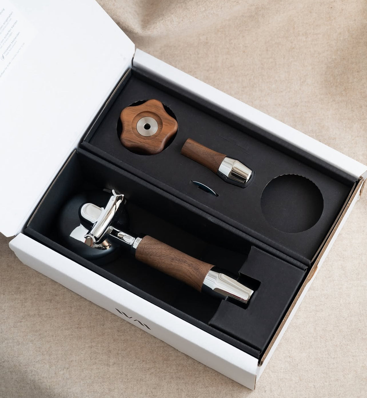 Unsure about which type of wood suits your style? With our sample kit, you will receive four real wood samples – the same wood we use in all our products. A perfect step for you who are considering investing in side panels for your espresso machine or a complete handle set, grinder lid, or other wooden detail from Wiedemann.