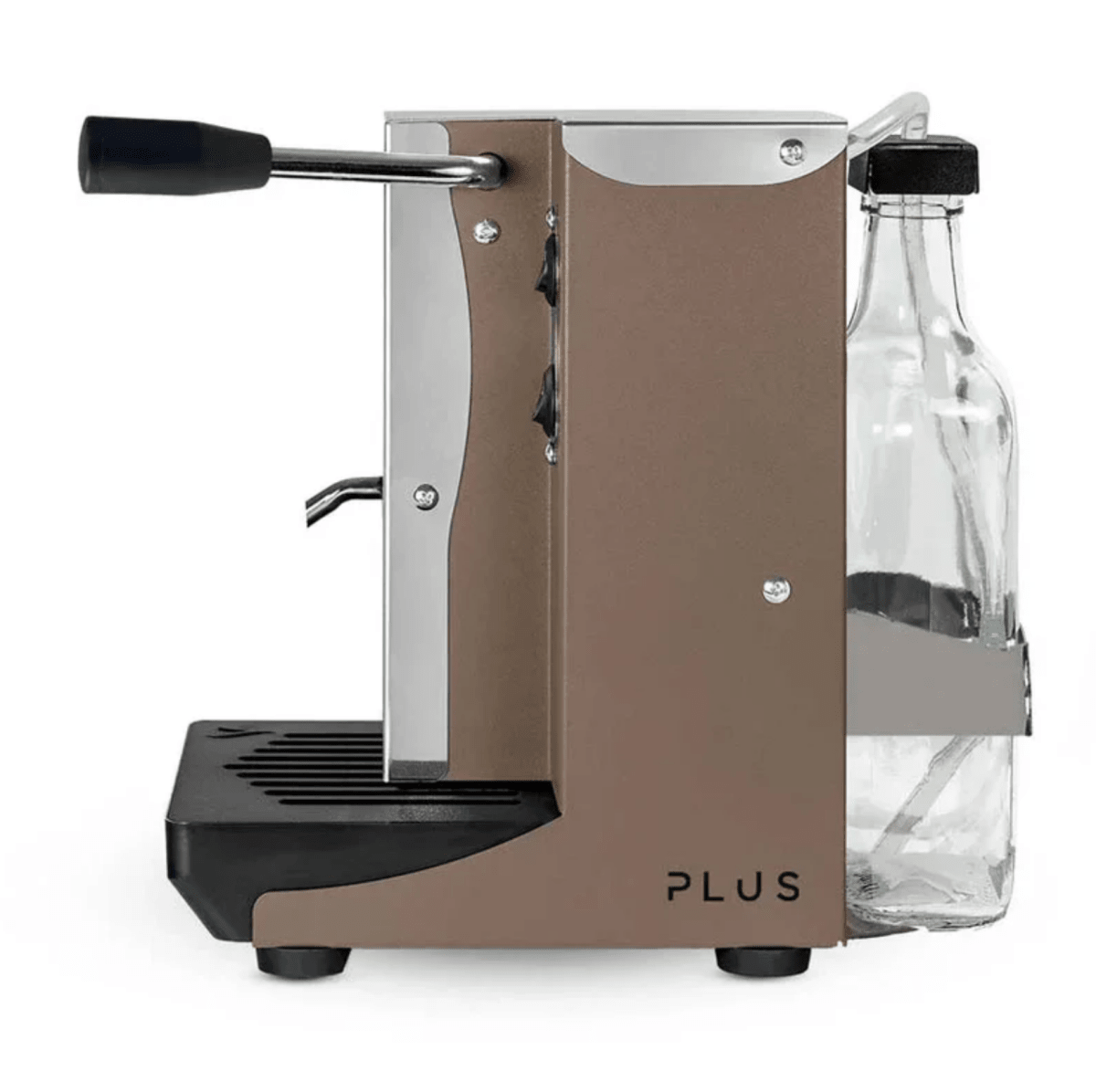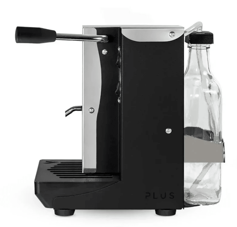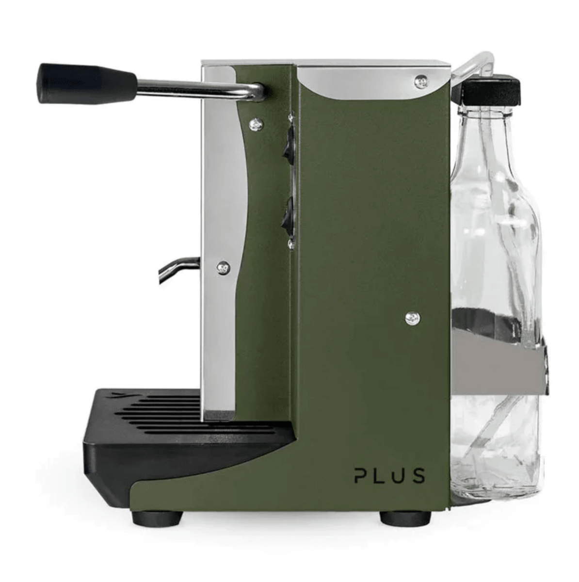 The brass pod press can be manually adjusted to optimize pressure depending on the coffee pod used, providing better extraction and more control over the flavor.
