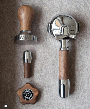 These portafilter are carefully processed and firmly screwed, made of solid hardwood and equipped with stainless steel threads. A portafilter is much more than just a machine for making espresso - it is an expression of quality, enjoyment, and timeless elegance. It is a part of your personal decor, and we give you the opportunity to design it individually according to your taste.