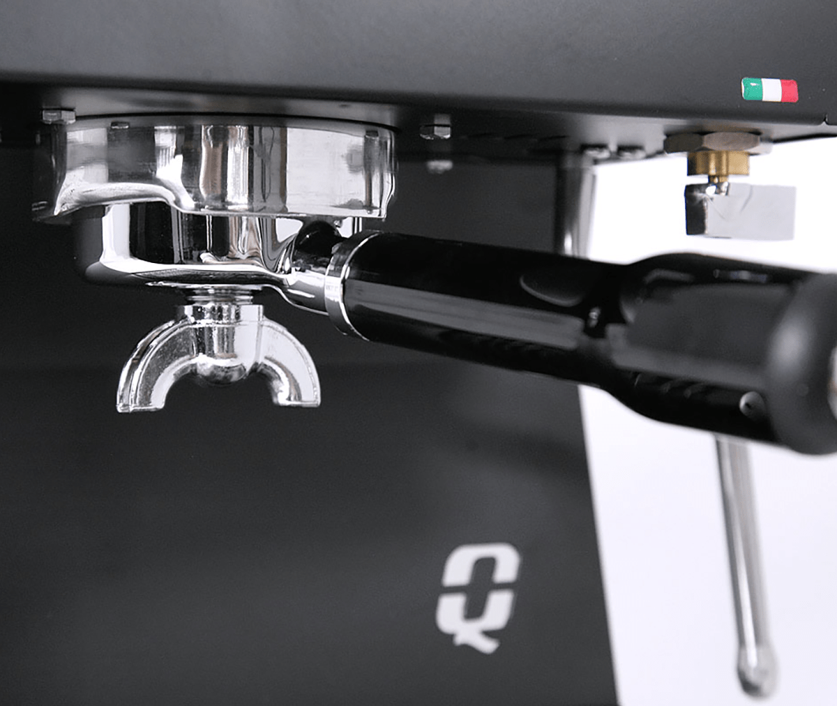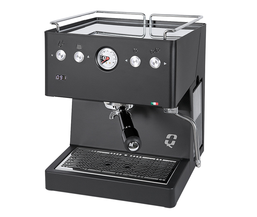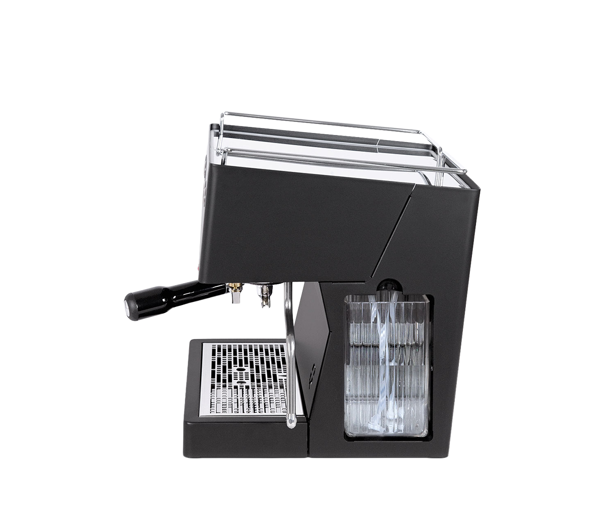 Material: Stainless steel; available in steel, matte black, and white; Quick Mill brew group with O-ring; anti-burn steam wand