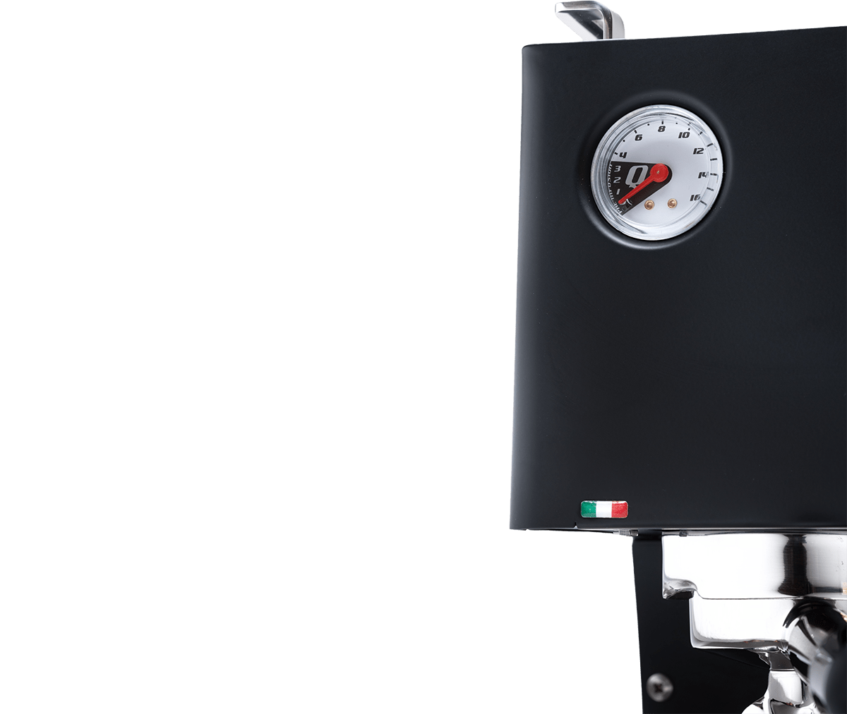 Material: Fully stainless steel; available in steel or matte black; Quick Mill brew group with O-ring; anti-burn steam wand