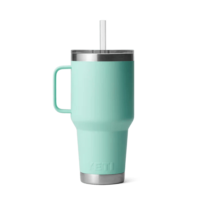 The YETI Rambler Straw Mug 1 liter in the color Seafoam is the perfect mug for those who want ice-cold drinks all day long, no matter what. About Whether you're on an adventure or at home, the mug is equipped with a reusable straw and lid that keeps your drink safe and spill-free.