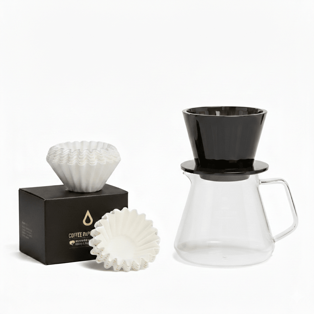 Pour Over Starter Kit - Timemore Dripper, Glass Pot & Paper Filters (1-2 cups)