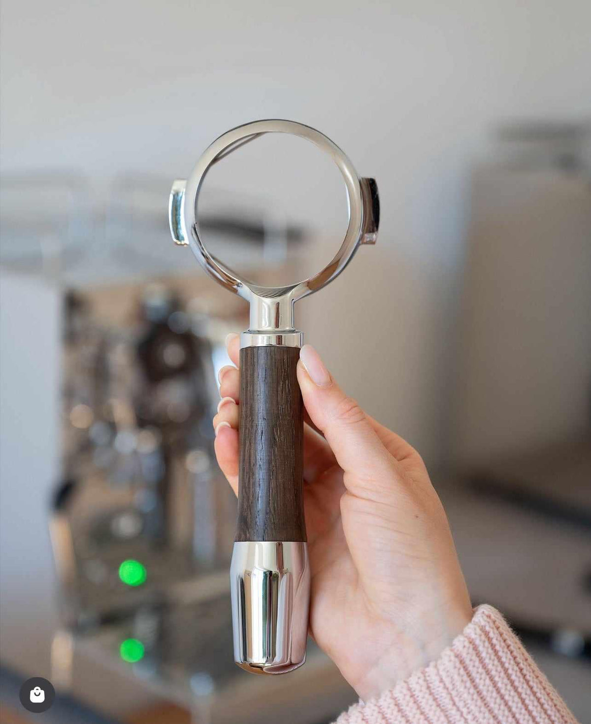 Our handle with the "Elegant" design comes with original portafilter heads from ECM, while all other portafilters have portafilter heads made of stainless steel. Every day, our handle provides a tactile experience that is outstanding. Our wood is hand-treated with organic hard oil to preserve the natural feel of the wood.