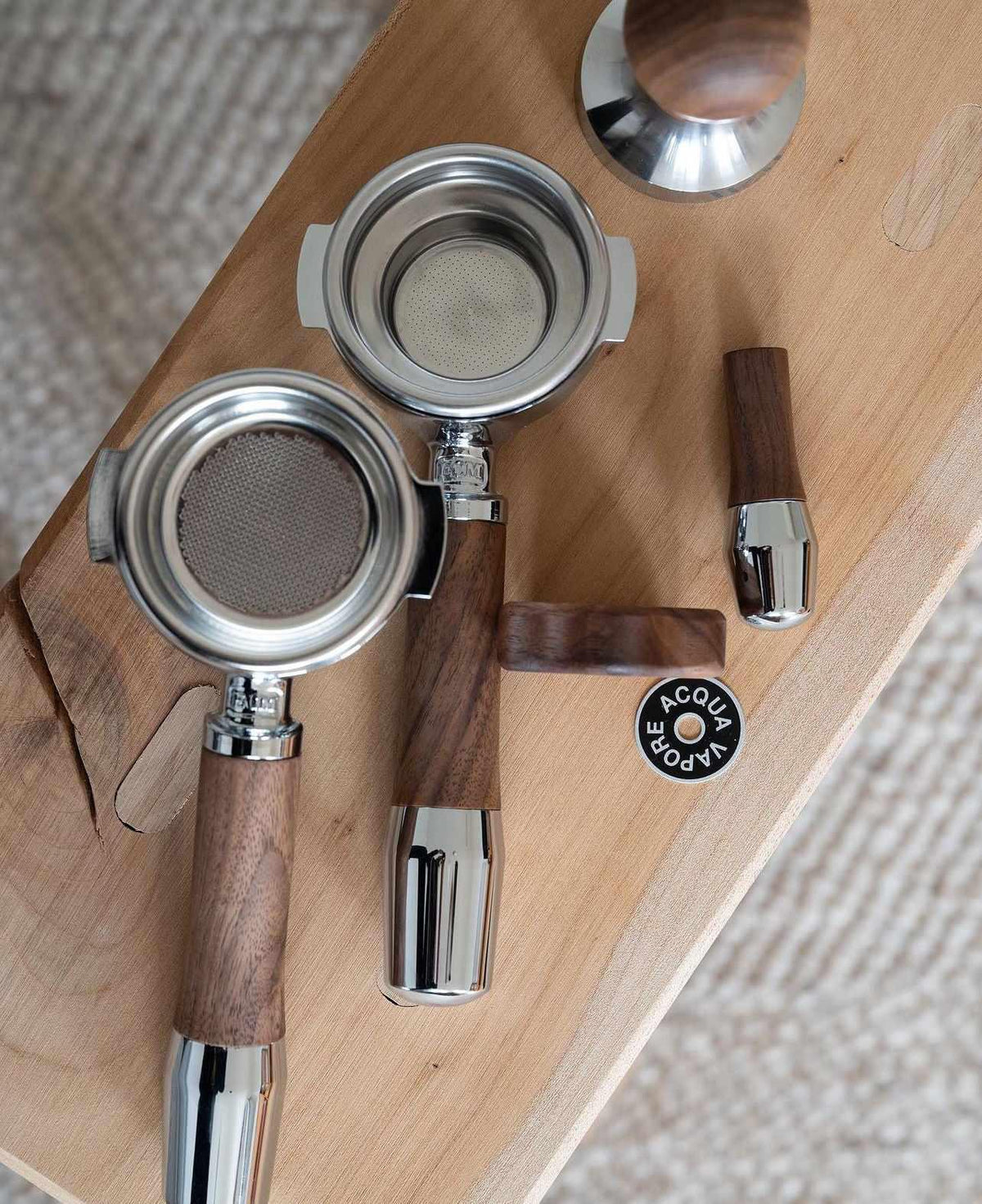 Our handle with the "Elegant" design comes with original portafilter heads from ECM, while all other portafilters have stainless steel portafilter heads. Every day, our handle provides a tactile experience that is outstanding. Our wood is hand-treated with organic hard oil to preserve the natural feel of the wood.